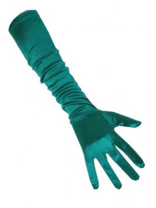 Deze lange groene handschoenen satijn en zijn 40cm lang