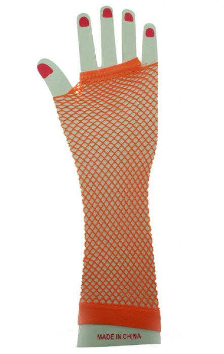 vingerloze nethandschoenen fluor oranje lang