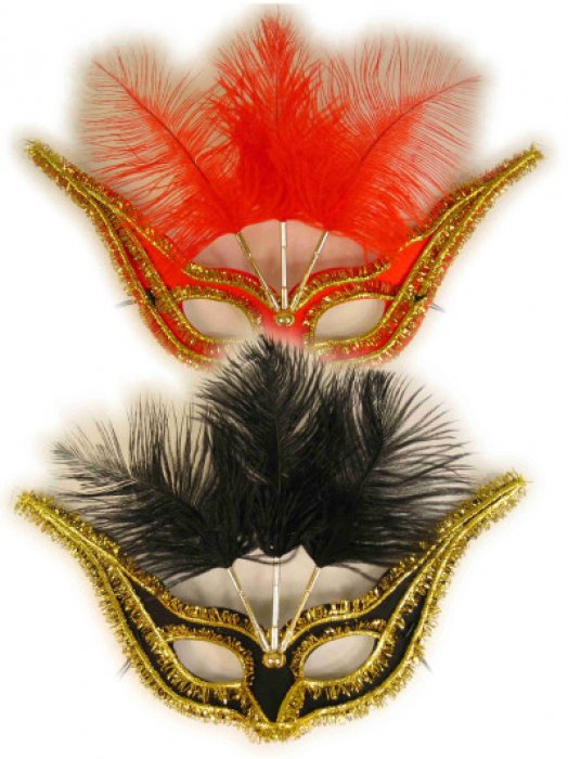 Omschrijving: Oogmakser gran gala + veertjes rood