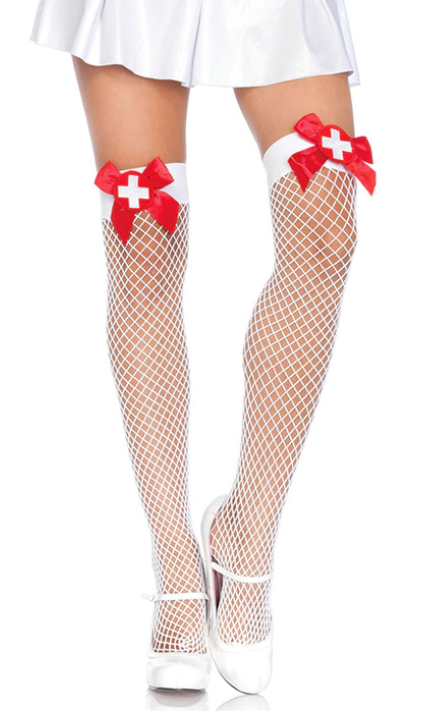 Deze Net Stay Up Panty Zuster Sexy Wit met Rode Strik is dé perfecte finishing touch voor jouw verpleegster outfit. De combinatie van fijne witte visnet stof en de opvallende rode strikken met kruisdetail zorgt voor een speelse én verleidelijke uitstraling. Ideaal voor carnaval, themafeesten, vrijgezellenfeesten of een spannende avond.