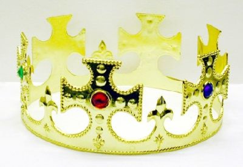 Gouden kroon met gekleurde plastic stenen is geschikt om je prinsen kostuum af te maken. Ook is het kroontje te gebruiken voor andere gelegenheden.