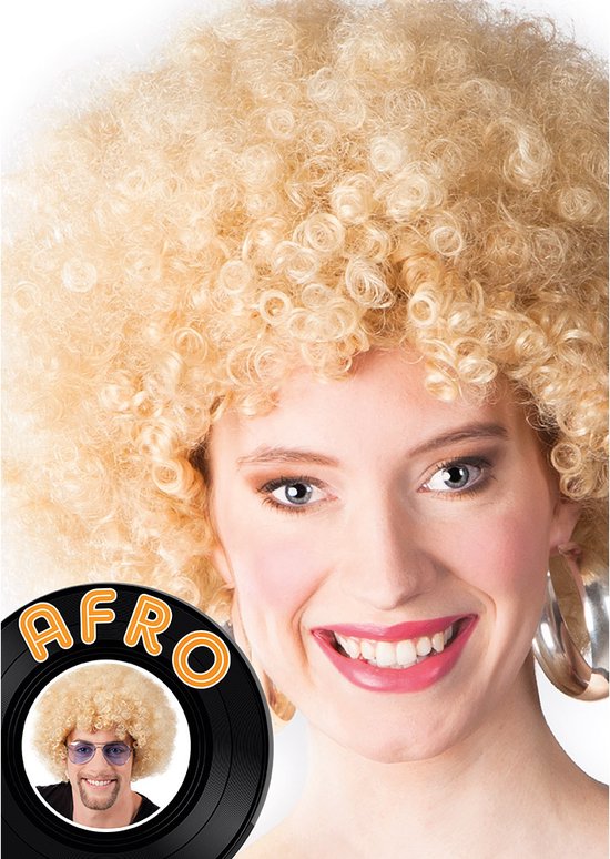 Wil jij echt opvallen? Met deze blonde afro pruik creëer je een opvallende en speelse look. Perfect voor carnaval, discofeesten en thema-avonden.