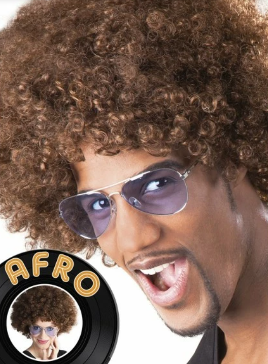 Met deze bruine afro pruik creëer je een stijlvolle en natuurlijke look. Perfect voor carnaval, themafeesten of een retro party.
