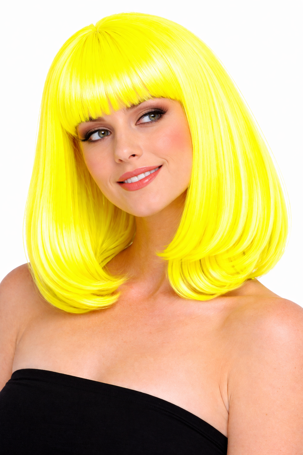 Fluor Gele Boblijn Pruik, Neon & Opvallend