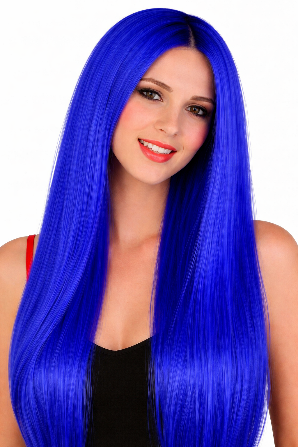 Wil jij een opvallende en elegante look creëren? Met deze lange blauwe pruik zonder pony geef je jouw outfit direct een unieke en stijlvolle uitstraling. Het lange, steile haar valt soepel langs het gezicht en over de schouders, wat zorgt voor een natuurlijke en verzorgde look.