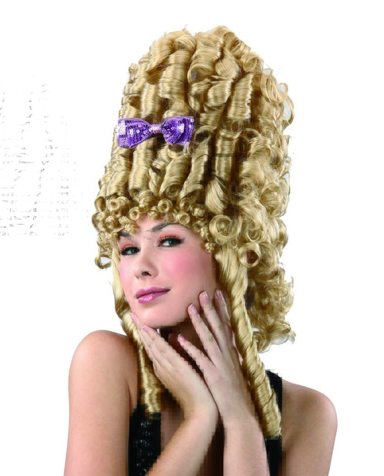 Stap terug in de tijd met deze indrukwekkende Marie Antoinette pruik in blond. Deze luxe pruik heeft een hoog, volumineus kapsel met klassieke krullen, geïnspireerd op de extravagante pruiken uit de 18e eeuw.