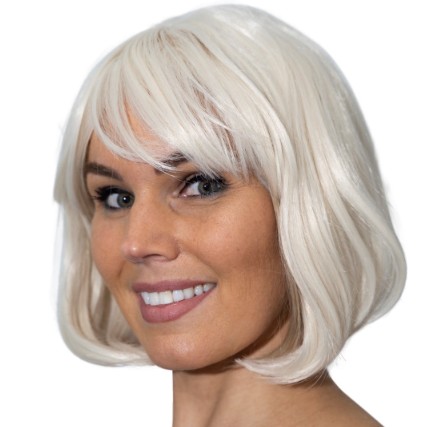 Pruik Party Bobline wit is een hele leuk pruik voor diverse thema feesten