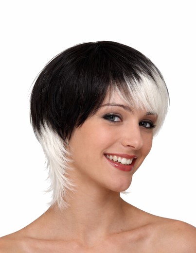 Ga voor een opvallende en speelse look met deze zwart-witte korte pruik! De unieke tweekleurige stijl – donker bovenop en licht in de lengtes – zorgt voor een stoer en modern effect dat direct de aandacht trekt.