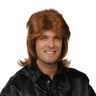 Deze bruine herenpruik heeft een klassiek retro kapsel met halflange lokken en extra volume. Het model geeft een typische jaren 70 uitstraling en is perfect voor verschillende feestelijke gelegenheden.