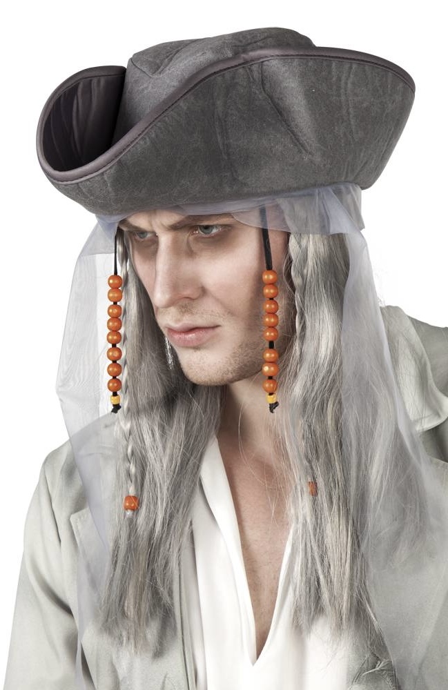 Piratenpruik Grijs met Hoed en Kralen