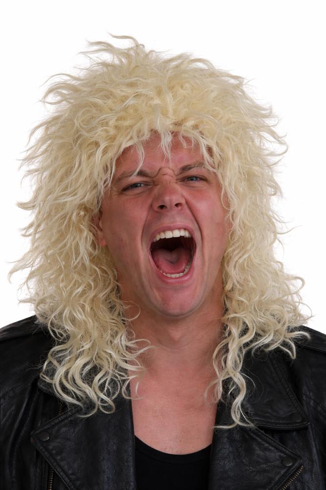 Ga volledig los met deze wilde blonde rocker pruik! Met zijn lange, warrige krullen en ruige uitstraling is deze pruik perfect voor een echte rock- of metal look.