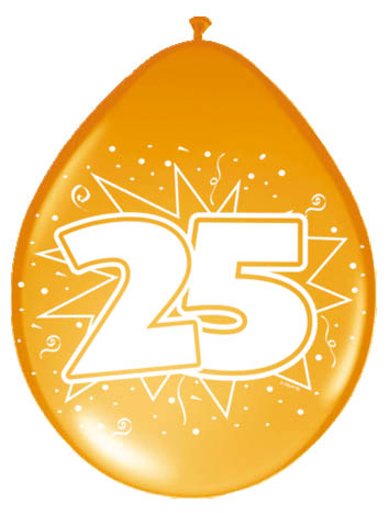 Ballonnen 25 jaar zijn verpakt per 8 stuks.