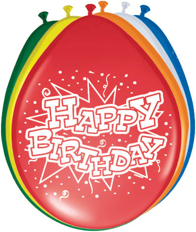 Ballonnen happy birthday zijn in assorti kleuren per acht stuks verpakt.