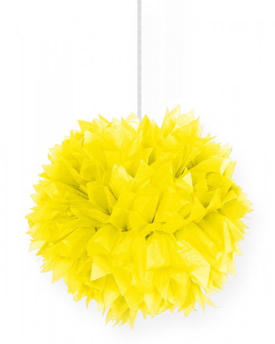 Deze Pompom geel is van papier gemaakt. De pompom heeft een diameter van 30cm.