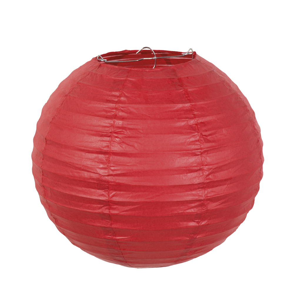 Deze ronde lampion rood is van papier gemaakt en heeft een diameter van 25cm.