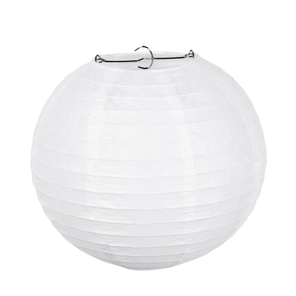 Deze ronde lampion wit is van papier gemaakt en heeft een diameter van 25cm.