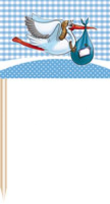 Omschrijving: Vlagprikker geboorte zoon met afbeelding ooievaar 50 stuks cocktailprikkers