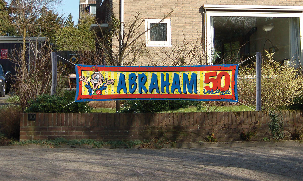 Banner abraham heeft een afmeting van 40 cm x 180 cm en is de perfecte manier om de jarige op te laten vallen