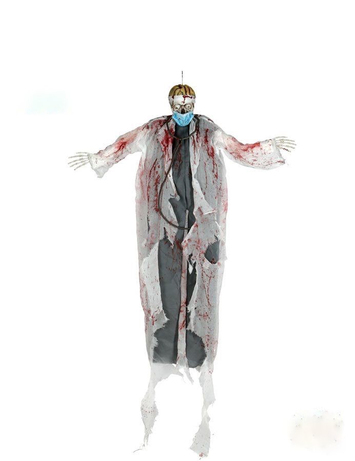 Hangdecoratie dokter met licht is 180 cm groot en een eyecatcher op ieder griezel of halloweenfeest.