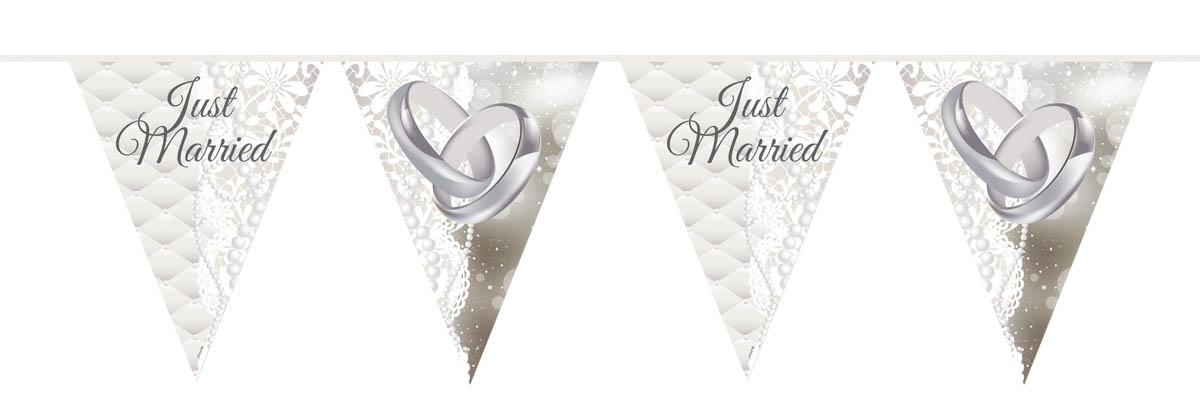 Vlaggenlijn just married is een leuke vlaggenlijn om je feest kenbaar te maken.