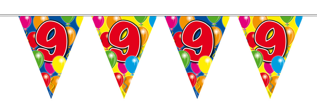 De leeftijd vlaggenlijn 9 jaar is voorzien van een ballonnen print.