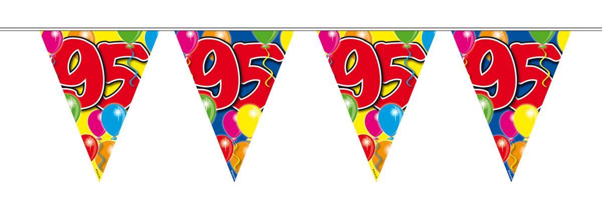 De leeftijd vlaggenlijn 95 jaar is voorzien van een ballonnen print.