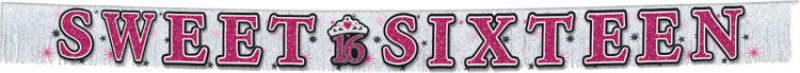 Omschrijving: Sweet sixteen 16 Slinger met franje, 150×20 cm